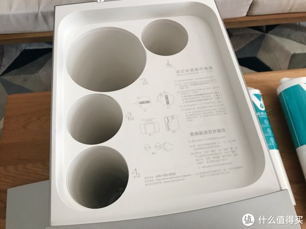 打开就能看到滤芯安装的凹槽,面板上印有安装说明,方便用户操作。