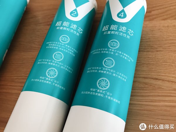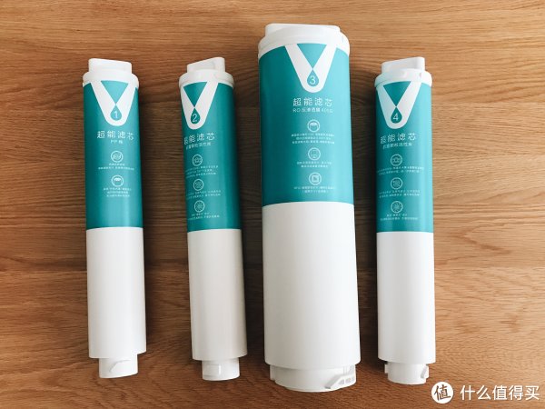 再说说机器的滤芯,一共有四根,上面标有对应的名称和功能。