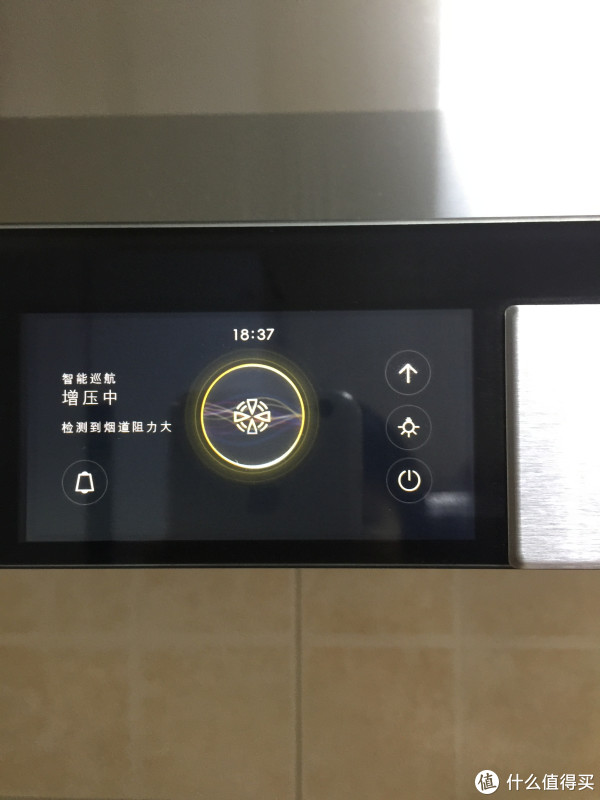 打开以后,油烟机检测到油烟,开始自动增压中。。。