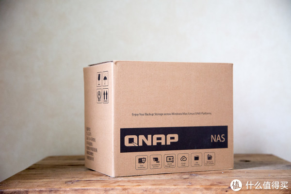 牛皮纸包装,上面有QNAP的logo。入门款包装似乎也有些简单。很多年没用过QNAP的NAS了。