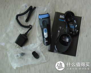 打开包装,看看剃须刀及配件。有说明书,一小瓶机油。