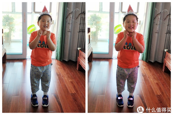 看样子孩子非常喜欢这双鞋,看着孩子开心的瞪着脚连连做着孙悟空的经典动作,小编心里甭提有多开心了。