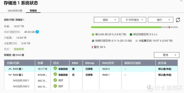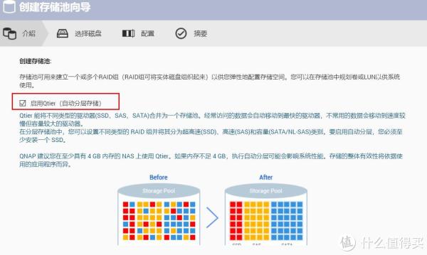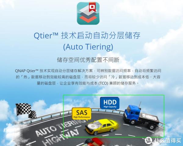 9、其中还有一个功能,名字叫Qtier,自动分层存储,这个功能也是我不自己DIY 万兆NAS,而买整机的理由!因为它的技术,可以将热文件放入到SSD里面,加速存储,而长期不用的文件,自动放到机械硬盘里,这也是为什么我的速度能这么快,这么稳定了: