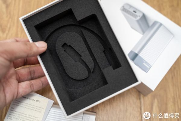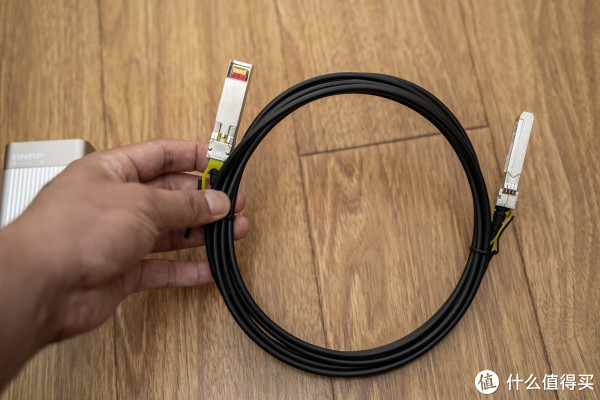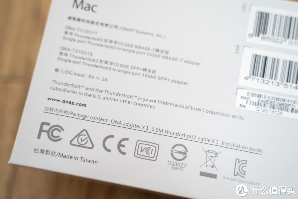 6、再来看看威联通T310G1S,雷电3转万兆的这个,一个奇怪的事情,包装上有提示0.5mm 雷电3的线: