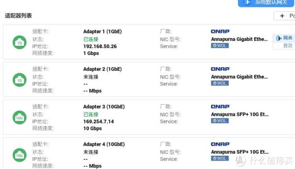 22、在威联通的网络设置里,可以看到已经连接上10Gbps线路了: