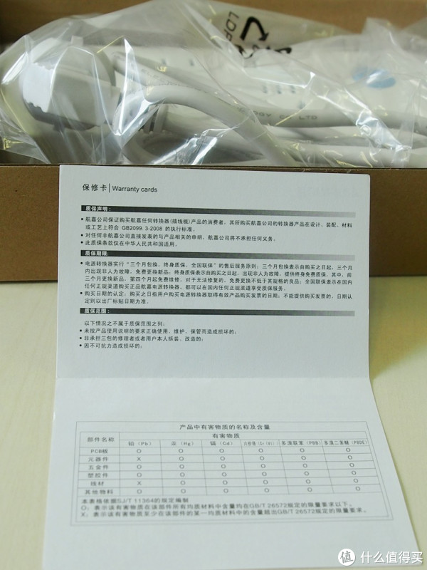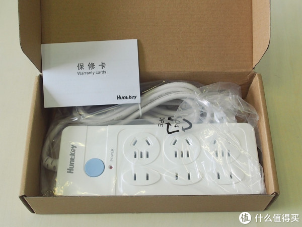 打开之后,比较简单,一个塑料袋装了排插,还有一个说明书和保修卡。