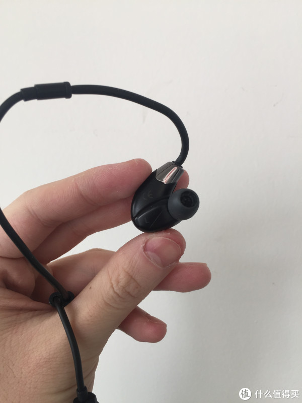 继续看看腔体背面,印有“CE”字样,以及标识左右的“R”或者“L”,由于字体颜色与耳机接近,十分不明显,反而不显突兀,给赞!