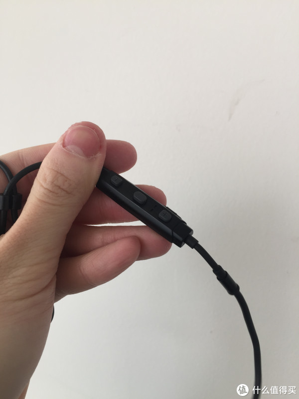 耳机的控制部分,分别是音量加减以及接听键,橡胶材质,手感个人感觉不如塑料或者金属按键触感来的直接,反应倒是灵敏。(灰色橡胶部分与塑料材质部分有一点点色差,材质的区别带来的色差个人不是强迫症也就无所谓,强迫症可能会比较介意