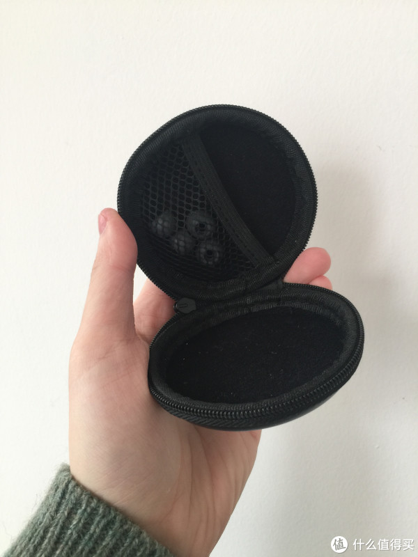 随耳机附送了三副不同尺寸的耳塞,我用了最小的,另外两副放在收纳包里。(可以看到收纳包内里绒面材质)