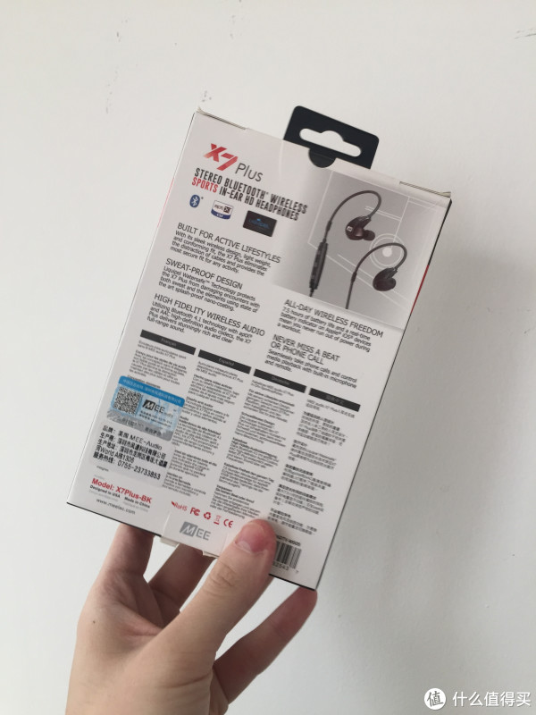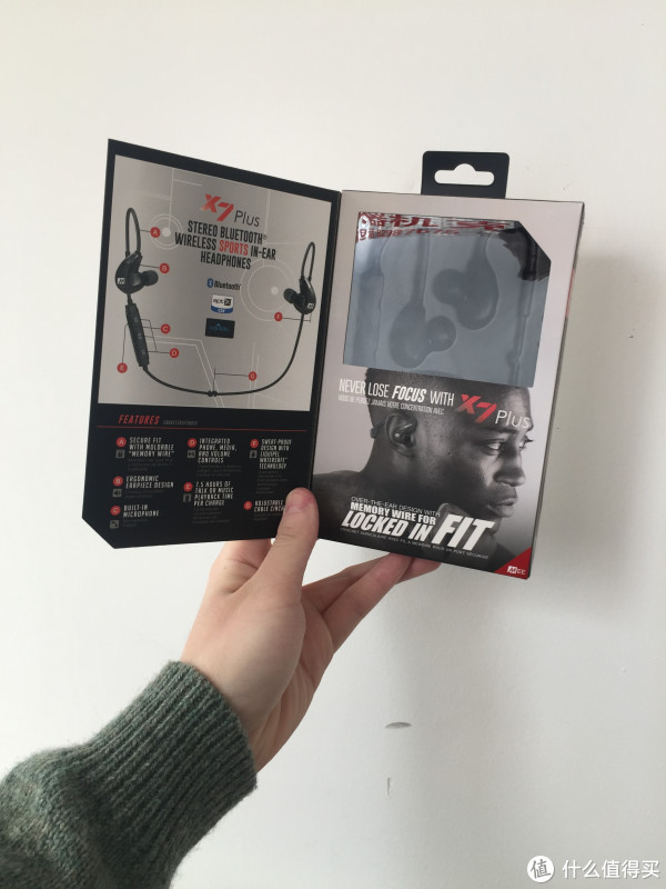 X7的外包装盒是以白色背景配以黑色及红色文字,个人感觉这个配色还是比较显得高级不廉价;左上红色的sports字样,最下一行的logo进一步说明此款耳机的功能以及使用场景(运动,运动,运动)。