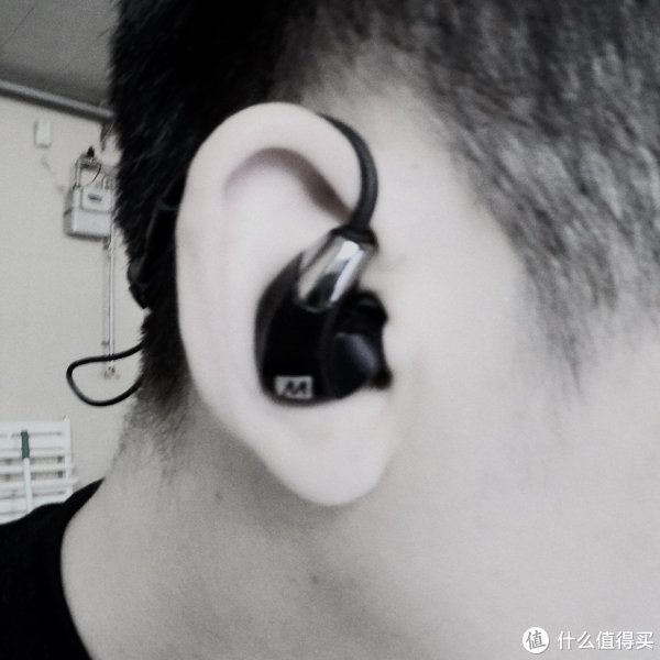 上一张佩戴图,本人大头大耳朵,可以看到耳机腔体依然巨大。