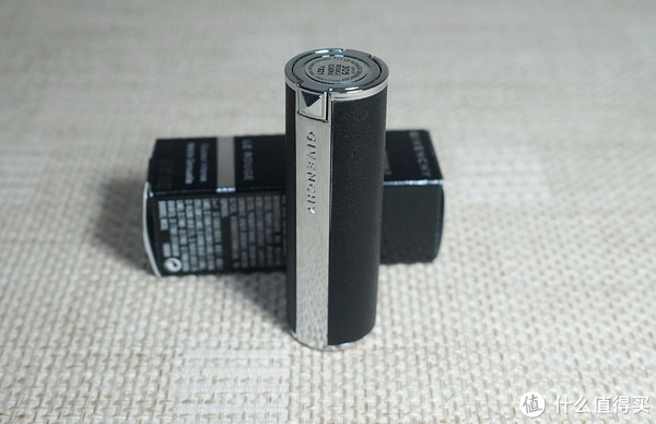 唇膏立起来的效果。外壳黑色的部分采用小羊皮的材质,闻起来有一股皮子的味道。