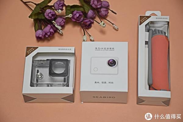海思Hi3559芯片在很多专业摄像机、高端无人机、极限运动DV、3D/VR相机中广泛应用,因此海鸟4K运动相机与大部分运动相机相比,配置和稳定性更有保障。这次我们拿到的是白色版海鸟4K运动相机,并搭配了专用防水壳以及浮水杆,三个设备都有独立的包装。
