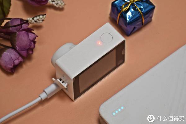 海鸟4K运动相机电源输入规格为5V 0.9A,采用普通安卓手机的充电线和充电头就能进行充电。充电时,状态指示灯显示为红色,充满电后状态指示灯显示为绿色。