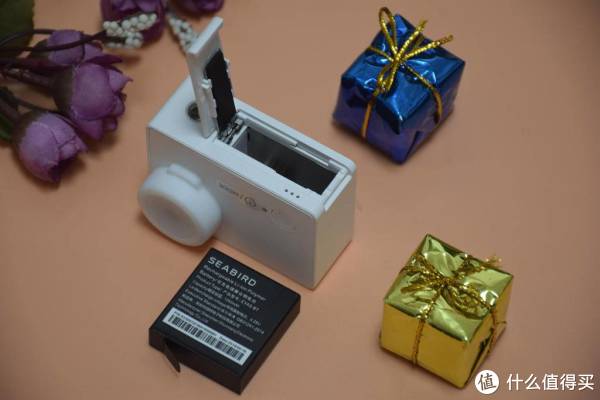 海鸟4K运动相机采用了可拆卸式电池,电池仓盖设计在机身底部,向外侧推动仓盖后,可以拽住电池尾部的塑料片将电池取出。取出后的电池也可以采用配套座充直接充电,电池容量为1050mAh,充满后在4K/30帧视频录制模式下可以工作90分钟左右,如果对续航能力有更高的要求,可以配备多块电池直接更换,省去充电的时间。