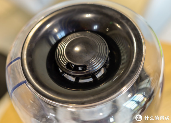 打开顶盖我们就可以直接看见无保护状态下的加湿器了。加湿器的开口非常大,拿掉中间的柱状物可以将整个手塞进去擦洗(即使你是砂锅大的拳头)这里就要diss一下某些加湿器的反人类设计,基本上是告别了用手简单清洁的可能。