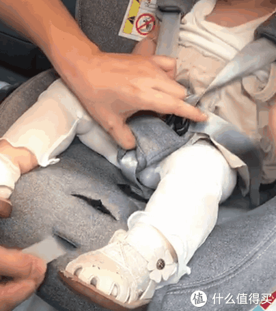 固定宝宝装置是五点式安全带,卡扣两边对准卡扣到位,正常卡入会听到“咔哒”的声音,卡扣上也有安装提示,显示为绿色表示卡扣到位了。