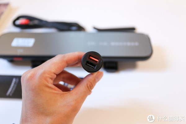 车充拥有两个USB接口,其中红色的为70迈后视镜的专用输出口,单口输出5V 2.4A,另一个口为5V 1A,两个口的最大输出电流为3.4A。建议尽量使用原车的车充头,其他一些车充头如果功率不够,可能导致后视镜系统的不稳定。