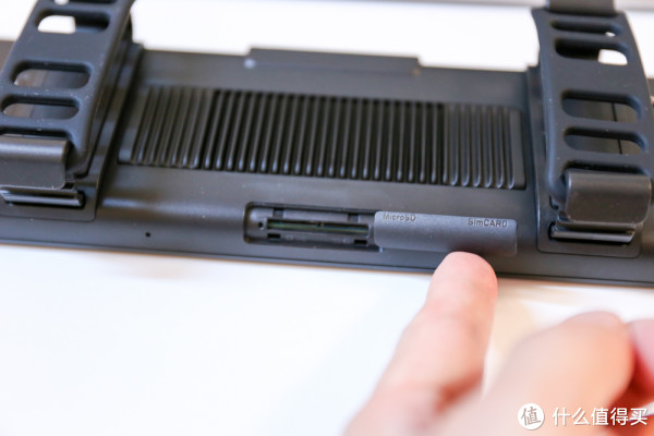 后视镜的底部,红色的为电源键。另外,左右两边各有一个Mic孔,70迈智能后视镜梦想版配置了主副驾唤醒模式,谁唤醒听谁的,能够有效避免其他声源干扰。卡槽在两个Mic的中间,SIM卡支持全网通4G,TF卡最大支持64GB扩展,建议Class 10以上。