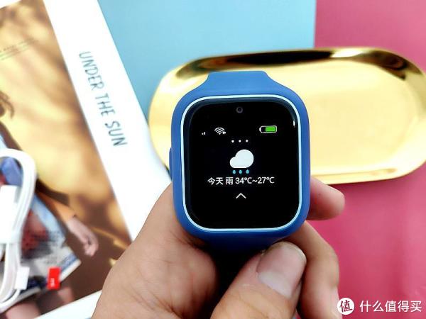 米兔电话手表通过左右滑实现功能的切换,通过下滑还可以查询当地的天气情况,提示出行穿衣。