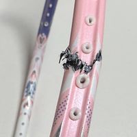 CSR核甲胶囊包覆在环氧树脂外层,产生韧性保护。碳纤维及拍框发泡材料中加入核甲胶囊,让碳纤维具有更高的抗拉强度,提升韧性,发泡树脂在发泡过程中更加紧实,发泡完成后具有更好的吸震性。FLASH中管,是通过东丽高端碳纤维M40J、M46J等多种碳纤维的组合配比,创造出的全新中观,中管缩小直径的同时,让球拍的回弹达到极致。都说这个中杆适中,确实也能感觉不出来,后场球10中6、7能回得准,上手很木。