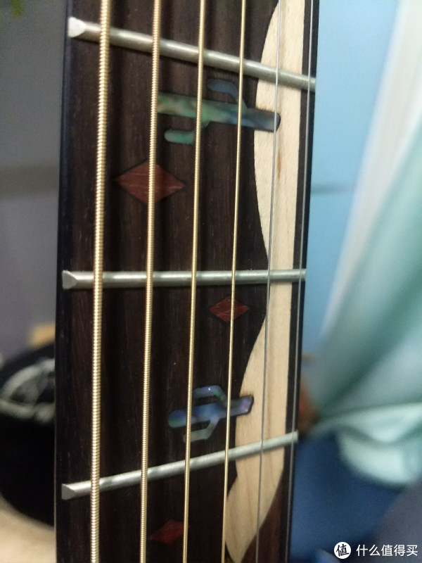 整个指板的外观可以说是非常的漂亮。而且玫瑰木指板还是挺好按的。