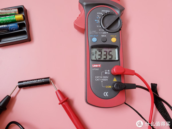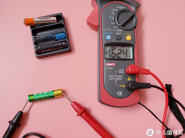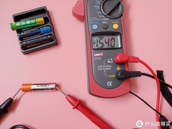 硕而博标注电压1.5V,测量电压1.54V。