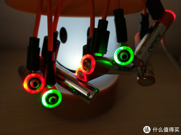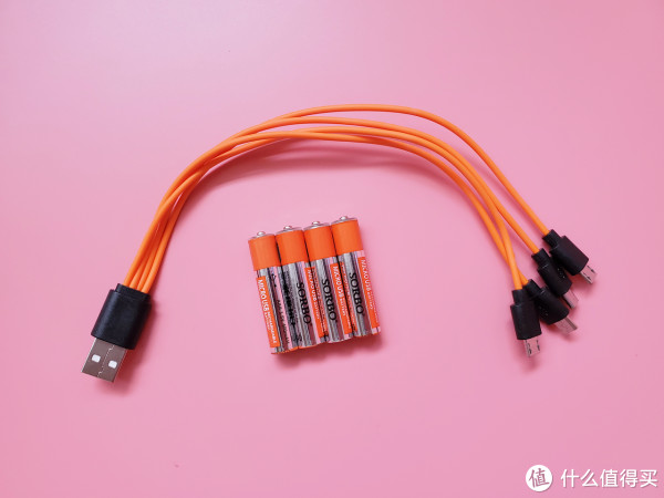 硕而博电池的充电方式最有意思,相当于把上面南孚电池充电方式中的充电器去掉,直接通过microUSB线充电,官方配备了一根一分四的充电线,可一根线同时给4节电池充电,充电时电池负极的环形指示灯会显示充电状态。
