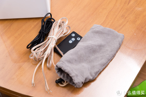 还有一个小收纳布袋,可以收纳无氧铜音箱线,3.5mm音频线,电源线和遥控器。