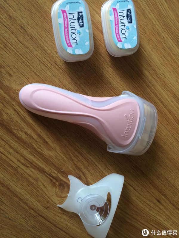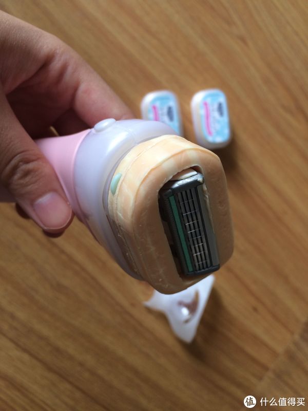 刀头上带香皂,洗澡的时候用很顺滑,不会疼也不用担心会刮破,就是刀头里的毛比较不好清理,要用小刷子和牙签才能清掉,带一个吸盘挂架,可以粘在浴室墙上
