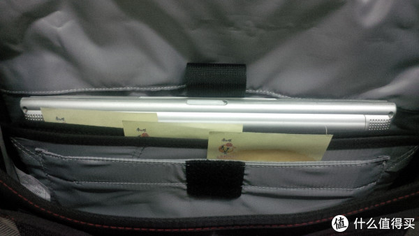 这包外部可以看到明显的防水面料,略带皮质光泽。包内大部分为尼龙布料,有三层笔记本内胆格,不可拆卸。最外面一层放10寸以下平板、kindle绰绰有余,中间层是13寸笔记本内胆,加厚加固,实测楼主14寸笔记本放不进去,只能放在最后面一层,这一层就紧贴包包背部了,不用担心,背部有一层柔软的透气层,既能为背负提供舒适感,也能对包内电子产品起到缓冲作用。