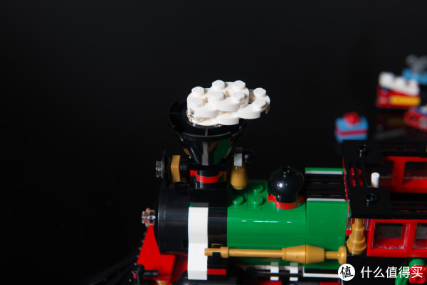 然后是烟囱,这一代的火车竟然搭出来了烟囱里冒出来的烟。烟囱有车灯、铃铛,细节不错~