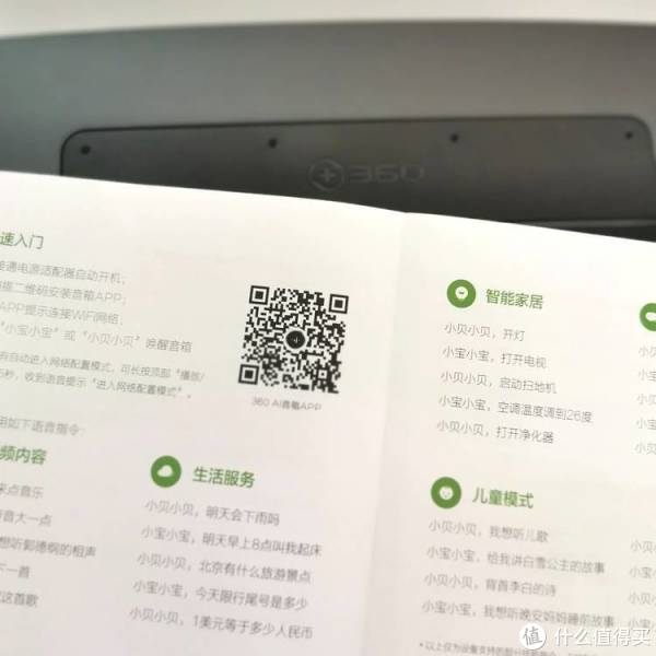 ·需要扫描说明书上的二维码,进行下载 360AI音箱 APP再做下一步操作 ,才可以保证完整使用音箱。