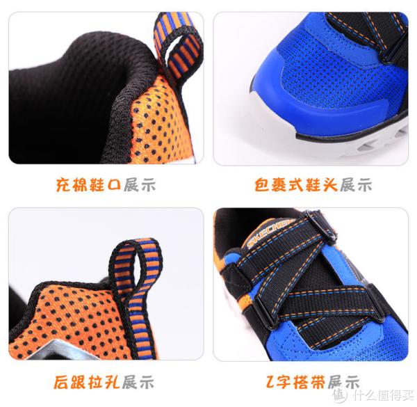 怎么样?这个侧颜杀是不是有点猝不及防?它的鞋口是做了充棉处理的,鞋头采用了包裹式的设计,后跟处设有拉孔,还有Z字搭带很有特色。我最初是觉得这个配色蛮漂亮的,但主要的还是孩子穿得舒服,不能只看外表,还得亲自测一测才行~