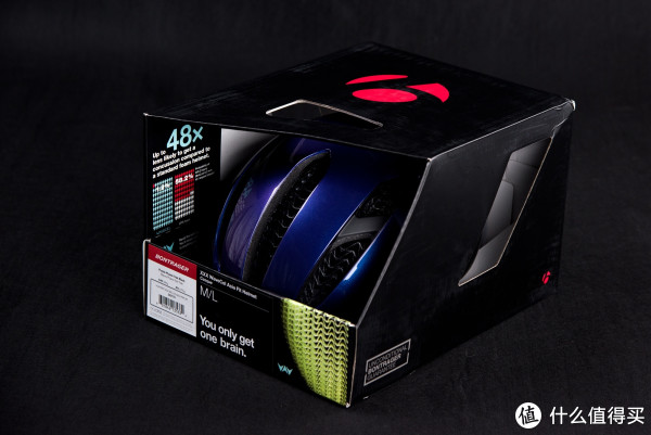 说完原理,看看产品。以上就是我收到的头盔——针对公路大组赛的Bontrager XXX WaveCel LTD。相比于“同门师弟”Bontrager Specter WaveCel,XXX更符合空气动力学,但也更重。图中这款是亚洲限量版外观,尺寸为M/L(55~61)号,实称裸重393g。