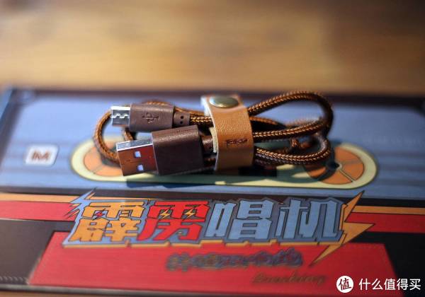 说起续航,我要称赞一下猫王的品质了。很多小型数码产品对于配件都非常的不在意,往往是搭配一条看起来非常劣质的小短线就得了。而猫王霹雳唱机却连这条不起眼的充电线都设计的非常漂亮,不仅是编织线材质,更是有一个皮质的捆扎绳进行固定,这才是细节之处见真章啊。