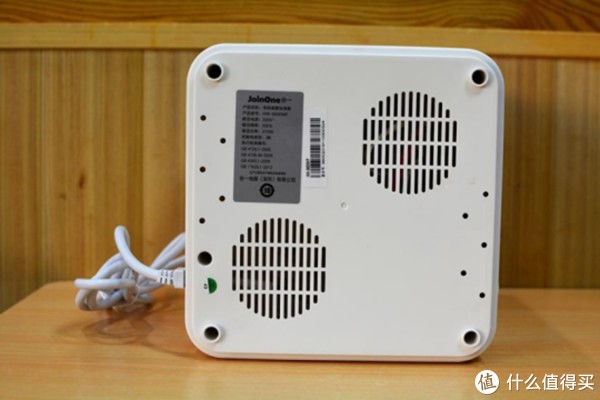 在加湿器的底部贴有着产品的参数可以明确的看到加湿器的额定功率270W,同时底部还有着两个散热孔,两个散热孔还是挺大的,散热效果也是很突出。