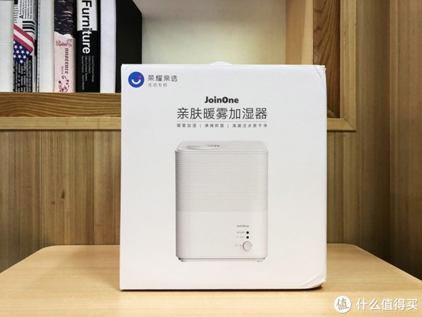 在这款加湿器的外观包装上看上去还是蛮简约的,整体采用了白色的包装盒,正面则是产品名称和产品图片啦,在正面的左上角呢还有着荣耀亲选的LOGO。