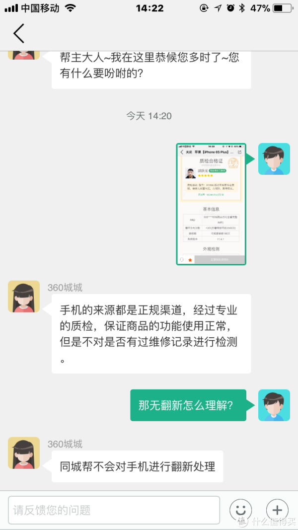 中间感觉就是换电池了,对同城帮的“无翻新”的定义表示怀疑,跟客服撕了一小下。结果,哎,心中略有失望,终究是钱包战胜了冲动。还有一些截图由于来回倒腾手机,丢失了,不贴上来了。