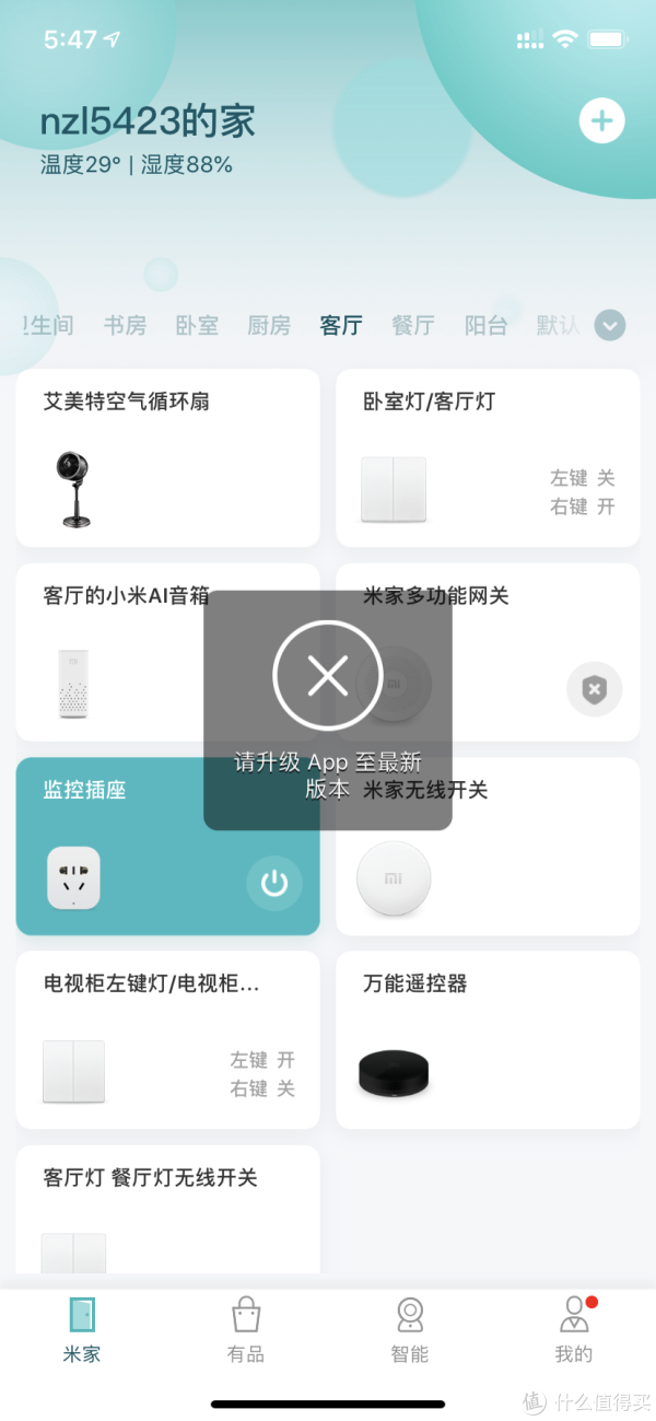 家里有几十个米家设备,连这个自然不成问题,很快连接完成,不过使用的时候就遇到问题了,点击艾美特循环扇,提示请升级App到最新版本。去appstore看了下,米家是最新版本,不用升级。也没有其他提示,遂联系有品客服,这客服的专业些令我吐出一口老血。