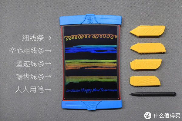 它们分别可以画出细线条、粗线条、空心线条、锯齿线条四种线条。只需轻轻一按上方按键,即可清除内容。