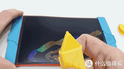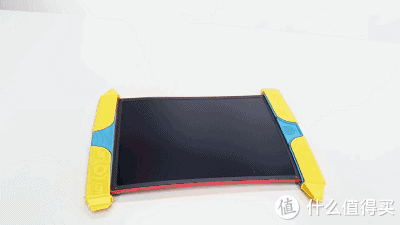 也许你会问为什么不用 iPad 之类的电子设备,那是因为这款彩虹画板使用的是 8.5 寸柔性液晶显示屏,显示耗电均来源于内置纽扣电池。