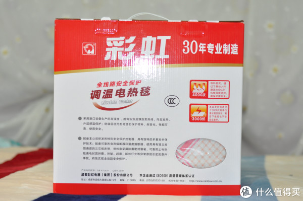 电热毯里面有电热丝,所以即使折叠也是简单的、宽松地叠起来,在包装上也会采用较硬的纸箱包装起来,彩虹的这款包装也是讲求使用,简单的设计加包装,看上去很亲民。