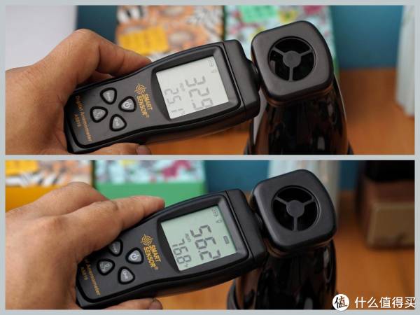 电源开关控制逻辑清晰,简单易上手,短按开、长按关,运行时短按还可在高低两档之间切换。高速档可以在进风口产生56.2米/秒的风速,相当于16级飓风;低速档可以产生32.9米/秒的风速,相当于12级飓风。