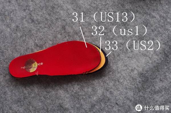 NB童鞋应该是很普及的鞋子,鞋垫型号是373,NB欧码31对应美码13号,而迪卡侬32码对应US1,33对应US2,有点奇怪的。因为美码是这样的,US13后面有US13.5,US13.5后面是US1(并不是US14),US1后面是US1.5,US1.5后是US2。