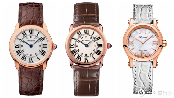 旁边就是卡地亚的店,先看了一个RONDE SOLO DE CARTIER腕表(下图左)看上去不错,价格也还行。但是和旁边的RONDE LOUIS CARTIER(下图中)一比,觉得还是RONDE LOUIS好。(废话,贵了一倍了)但是想想,一个6万多的表,竟然是石英的,实在不合算。(楼主多年逛表论坛的下意识还在)。于是,出门转弯,看见了萧邦HAPPY SPORT,价格和上面一个差不多,但是漂亮多了,还是机械的。老婆觉得不错,当时就让店员去问底价,店员说要半个小时。傻坐着也没意思,出去逛逛呗。
