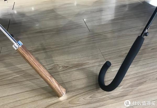 LIFEME梨木伞重642.5克(相当于1.285斤),而20块的雨伞重量只有408克,轻了234克。撑在手上感觉挺有分量的,撑久了有点小累。