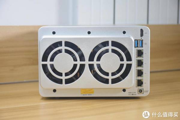 铁威马F4-421机身背后采用双风扇进行强制散热,再加上铝合金外壳的导热能力,保障硬盘能够持续稳定运行。