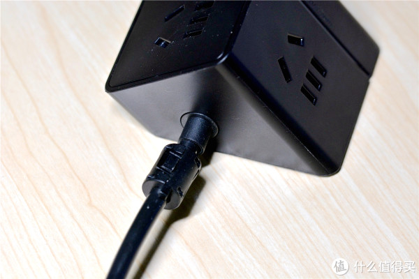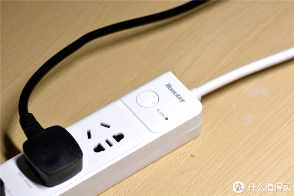 在插头的设计上,采用了小体积的三相插头,能保证对家用插座面板的面积占用控制到合适的范围,不会影响两相插孔的使用,这一点,与市面上目前大部分多工能插座的设计一致。