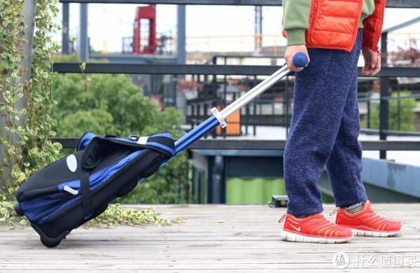 调整下T型手把的长度,书包背带收好,即可将书包和手把组装成一个拉杆书包,现在小朋友上学一般都是这样的造型,主要也是为了给小朋友厚重的书包减负。拉杆高度可以从最低67cm调节至最高91cm,适合不同身高的使用者。